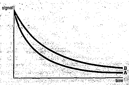L'inviluppo dei massimi del segnale ottenuto decade con costante di tempo pari a T2 (fig.17).